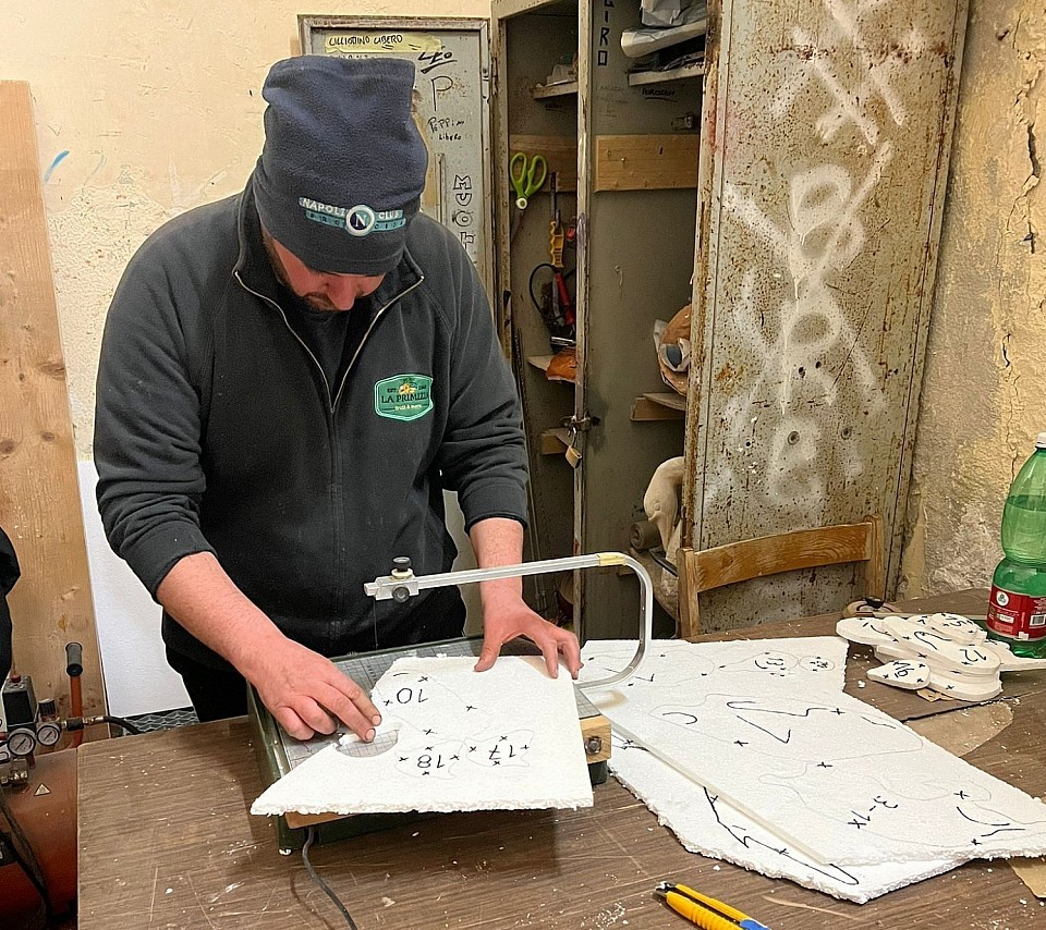 • La maggior parte della realizzazione avviene nei locali allestiti dall’Associazione all’interno dell’ex carcere di Procida. Altrimenti, spesso per i più piccoli, vengono costruiti in garage privati, cantine e piccoli laboratori sparsi per l’isola, trasformati per mesi in officine artistiche.