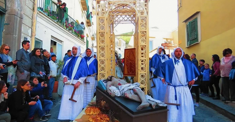 • La processione parte da Piazza d’Armi, nei pressi dell’ Abbazia di San Michele Arcangelo, situata nella parte più alta e antica dell’isola e scende per i principali vicoli del centro storico, con i Misteri che avanzano in silenzio, rotti solo dal suggestivo suono della Tromba e tamburi.