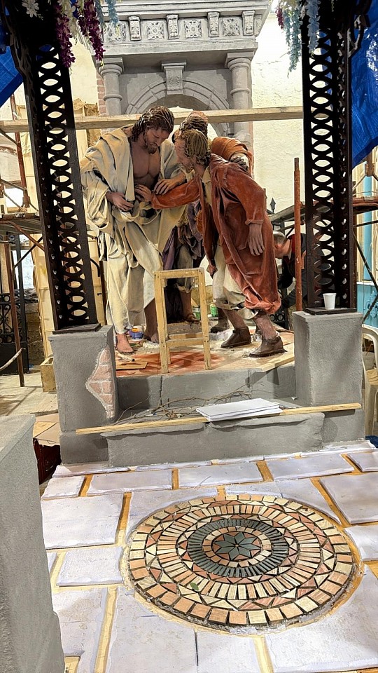 Descrizione: motivazione della scelta del tema - messaggio, significato o attualizzazione del tema (cosa si è voluto comunicare o rappresentare): Tommaso passa dall'incredulità alla fede piena, riconoscendo Gesù non solo come maestro risorto, ma come vero Dio e Signore della propria vita. Questo passaggio sottolinea la fede dei credenti che, pur non avendo visto fisicamente Gesù Risorto, credono alla sua presenza nel mondo.